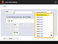 Multiple destinations registered in the Address Book can be combined into a group. For details, see Registering Multiple Destinations as a Group. To change or delete the information of destinations registered in the Address Book, see Editing the Registered Destinations in the Address Book. UPN can be used only if you are sending to a computer belonging to a domain operated with Active Directory. |