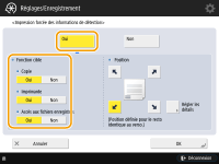 Dans <Fonction cible>, appuyez sur <Oui> pour chaque fonction à laquelle vous souhaitez appliquer ce réglage.