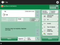 Schermata delle funzioni principali fax