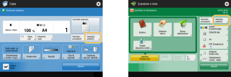 Per facilitare l'uso della schermata <Home> e della schermata Funzioni di base per ogni funzione, è possibile personalizzare la schermata ridisponendo i pulsanti o creando scelte rapide. Inoltre, è possibile lavorare in modo più efficiente registrando le impostazioni già specificate per le funzioni utilizzate di frequente in <Personale>/<Condiviso>, oppure le Impostazioni personali per personalizzare l'ambiente operativo in base alle proprie preferenze.