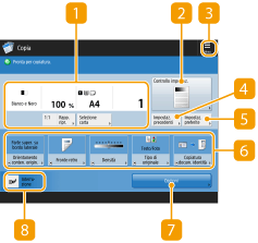 Premendo <Copia> nel Home, viene visualizzata la schermata delle funzioni principali della copia.