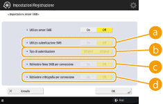 Selezionare <On> in <Utilizzo server SMB> ed eseguire le impostazioni necessarie.