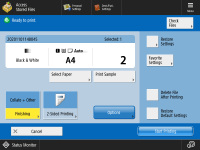 Optionen auf dem Bildschirm für Druckeinstellungen