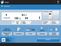 Drücken Sie die Funktionstasten auf dem Bildschirm <Startseite>, um das Grundfunktionsdisplay aufzurufen, wo Sie auf grundlegende Funktionen wie Kopieren, Faxen und Scannen zugreifen können. Obwohl sich die angezeigten und einstellbaren Elemente auf dem Grundfunktionsdisplay je nach Funktion unterscheiden, können Sie die Einstellungen ändern, um sie an Ihre Bedürfnisse anzupassen. Anpassen des Grundfunktionsbildschirms