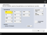Wenn Papierformat und Papiertyp gewechselt werdenWenn Sie das Papierformat wechseln, ersetzen Sie auch das Papierformatetikett entsprechend ( Anbringen des entsprechenden Papierformatetiketts). Beachten Sie, dass das Papierformatetikett Papierformate enthalten kann, die auf dem Gerät nicht verfügbar sind. |