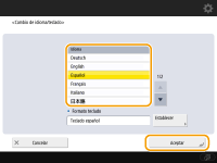 En algunos idiomas, se puede cambiar el formato del teclado. Una vez seleccionado el idioma, pulse <Establecer>, seleccione el tipo de formato y pulse <Aceptar>.