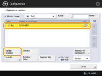 No puede especificar un servidor WebDAV como destino de reenvío de I-fax. Si especifica un destino para el que <Confirmar antes de enviar> está habilitado como destino de reenvío, no aparece la pantalla para introducir la contraseña. Se utilizará la contraseña registrada y se realizará el reenvío. Registro de destinos Los documentos con errores de reenvío se gestionan de acuerdo con la configuración de <Tratamiento archivos con errores de reenvío>. Puede guardar hasta 1.000 ajustes de reenvío. |