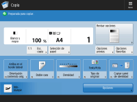 Pulse , que aparece en la pantalla de <Inicio> y en la pantalla Funciones básicas, para personalizar la pantalla, reorganizando botones o creando una tecla de acceso directo. Personalizar la pantalla táctil![]() Puede cambiar las opciones de visualización en pantalla, como por ejemplo la pantalla que aparece justo después de encender el equipo, y si aparece el mensaje de papel y tóner restantes. <Opciones de visualización> Puede establecer qué pantalla debe mostrarse cuando haya transcurrido un tiempo sin que se realice ninguna operación. <Función tras reinicio automático> |