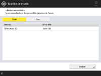 (Monitor estado/Cancelar), se muestra la pantalla Monitor estado, donde se pueden revisar el nivel de tóner u otras indicaciones de estado.