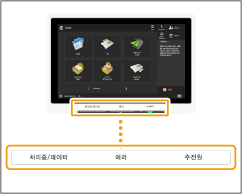 : | 처리 중/데이터 표시등 송신 또는 인쇄 등의 작업을 수행하는 동안 깜박입니다. 처리 대기 중인 문서가 있으면 녹색불이 켜집니다. |