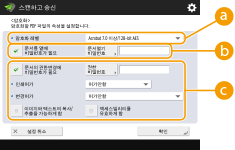 <암호화 레벨>에 대하여 <Acrobat 3.0 이상/40-bit RC4> 이외의 항목을 선택했을 때에만 표시됩니다. 이 항목을 선택하면 스캔한 파일에서 이미지/텍스트를 복사 또는 추출할 수 있습니다.