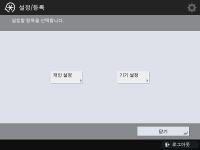 이 단원에서는 설정/등록 메뉴의 각 항목으로 구성할 수 있는 설정에 대해 설명합니다. 사용할 수 있는 항목은 로그인 시 사용자 권한과 사용되는 장치에 따라 다릅니다.
