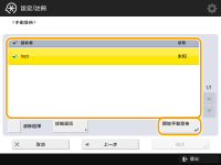 裝置資訊的配置與更新用戶端機器在處理其他資料時,可能無法配置或更新裝置資訊。 如果用戶端機器未能在指定的時間接收自動配置的裝置資訊,配置將會等到下個指定的時間才會再次執行。 從不同的 Canon 多功能印表機機型接收裝置資訊當本機作為用戶端機器使用時,可以透過將 <接收設定> 中的 <接收裝置資訊限制> 設定為 <關閉>,以便接收來自不同 Canon 多功能印表機機型的裝置資訊。然而請注意,部分資訊可能無法正確配置。 選擇要接收裝置資訊的功能當本機作為用戶端機器使用時,只要將 <接收設定> 中的 <每種功能的接收限制> 設為 <關閉>,便可限制接收資訊的功能。 還原先前的裝置資訊您可以在用戶端機器上執行作業,以還原執行更新之前已經存在的裝置資訊。但是您只能夠還原在更新前所存在的資訊。比該時間更舊的資訊則無法還原。同時也請注意,<設定/註冊機密傳真收件匣> (<設定/註冊機密傳真收件匣>) 中的 <URL傳送設定> 只有在 <設定/註冊設定數值> 和 <通訊錄> 的資料沒有在同時還原時才能夠清除。<裝置資訊發佈設定> |