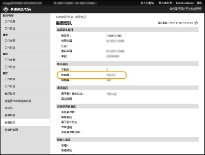 ![]() | 會定期發行新韌體以加入新功能或使用現有功能解決問題。如果有可用的新韌體,請遵照下面的程序在本機進行韌體更新。需要有管理員權限才能更新韌體。 |