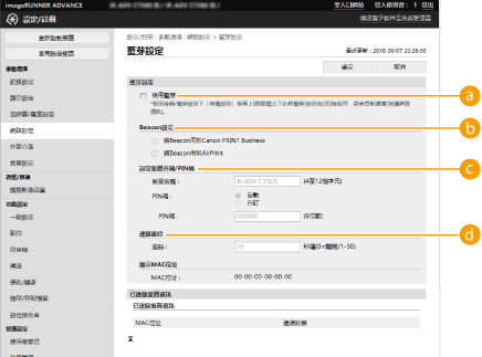 [Beacon設定]勾選 [將Beacon用於AirPrint] 核取方塊。
