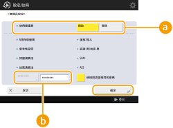 輸入用於認證的密碼。在輸入密碼時,會顯示 <確認> 以便確認。再次輸入密碼。