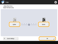 <Adjust Black Hue>Adjust towards the side of <Lighter> to prevent the image from becoming over-darkened. Adjust towards the side of <Darker> if text and images are too light. When adjustment is complete, press <OK>.