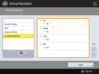 The destinations that can be specified when sending faxes or scanned documents can be restricted to those registered in the Address Book or one-touch buttons, those registered in <Favorite Settings> or <Send to Myself>, or those that can be searched on the LDAP server. When this function is enabled, users cannot specify destinations using alphanumeric character input.