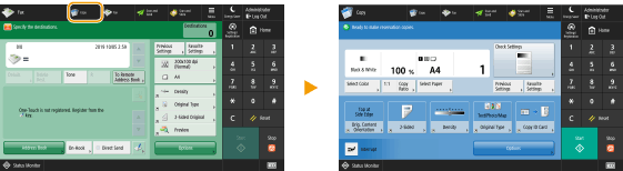 You can create a shortcut button for the functions on the <Home> screen. Use this button to access a different function without returning to the <Home> screen. To create a shortcut, log in with administrator privileges. Logging into the Machine