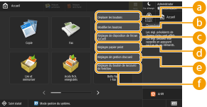 <Restreindre l'affichage des fonctions> : sélectionnez les fonctions ou les applications MEAP à masquer sur l'écran <Accueil>.