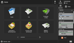 Nella schermata <Home>, premere i pulsanti funzione per visualizzare la schermata Funzioni di base, che consente di accedere alle funzioni base quali copia, fax e scansione. Sebbene le voci di visualizzazione e impostazione nella schermata Funzioni di base siano diverse a seconda delle funzioni, è possibile modificare le impostazioni in base alle proprie esigenze. Personalizzazione della schermata delle Funzioni di base