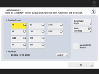 Wenn Papierformat und Papiertyp gewechselt werdenWenn Sie das Papierformat wechseln, ersetzen Sie auch das Papierformatetikett entsprechend ( Anbringen des entsprechenden Papierformatetiketts). Beachten Sie, dass das Papierformatetikett Papierformate enthalten kann, die auf dem Gerät nicht verfügbar sind. |