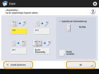 Drücken Sie <OK>, um die Einstellungen anzuwenden, oder drücken Sie <Einstell.abbrechen>, um die Änderungen zu verwerfen und die vorherigen Einstellungen wiederherzustellen.