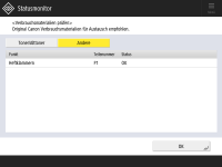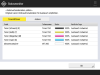Sie können die verbleibende Menge an Verbrauchsmaterialien über die Remote UI prüfen. Überprüfen des Gerätestatus |