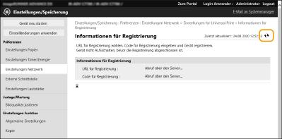 Klicken Sie auf den URL-Link, der für [URL für Registrierung] angezeigt wird.