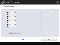 Stellen Sie sicher, dass das in den Papierkassetten eingelegte Papier korrekt festgelegt ist. ![]() ![]() Wenn die Papierformate korrekt sind, drücken Sie <OK>. Informationen zum Bildschirm und Anweisungen zum Ändern der Einstellungen finden Sie unter Angeben von Papierformat und -typ in der Papierkassette. Wenn Sie nicht als Administrator angemeldet sind, fahren Sie mit Schritt 10 fort. | |