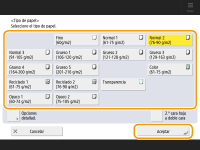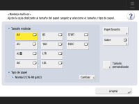 <Aceptar>. Registrar el tamaño y el tipo de papel de uso frecuente para la bandeja multiuso