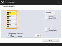 Tamaños de papel automáticamente detectablesSi aparece <Personalizado> aunque esté cargado papel del tamaño estándar, pulse <Tamaño personalizado>
