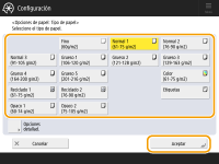 Seleccione el tipo de papel y pulse <Aceptar>.