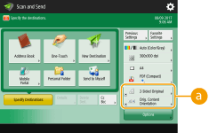 Los botones de opciones que aparecen en la pantalla de funciones básicas (de copia, fax y lectura) se pueden cambiar con otros botones de configuración en <Opciones>. Al situar los botones de opciones de uso frecuente en la pantalla de funciones básicas, puede utilizar las funciones de forma más eficiente. Además, al iniciar sesión con gestión de autenticación personal, puede mostrar una pantalla de funciones básicas personalizada para cada usuario.