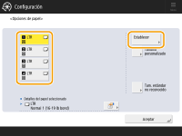 Si no se muestra el tipo de papel cargado, pulse <Opciones detallad.> para seleccionarlo de una lista.