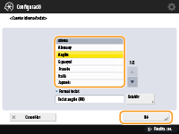 Premeu <Canviar idioma/teclat>, seleccioneu un idioma de la llista i premeu <Bé>.