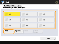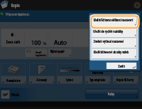 Nastavení kaskádního kopírování* (pouze Řada 8700 / Řada 6700 / Řada 4700)Nastavení kaskádového kopírování uložená v <Předchozí nastavení> nebo <Oblíbená nastavení> se po restartování stroje nebo tiskárny pro kaskádové kopírování změní na nastavení místní tiskárny. Chcete-li vyvolat <Předchozí nastavení> a provést kaskádové kopírování, zapněte hlavní napájení stroje a po uplynutí doby nastavené v <Doba čekání na připojení při spuštění> aktualizujte informace pro tiskárnu pro kaskádní kopírování. <Čas. prodleva komunikace kaskád. kopírování> (pouze Řada 8700 / Řada 6700 / Řada 4700)