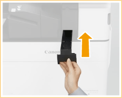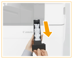 Na het half uittrekken van de ponsafvalbak legt u er een hand onder en trekt u hem er helemaal uit.