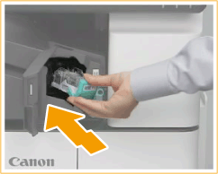 Steek het lipje van de nietpatroon in de nietpatroonhouder en laat de nietpatroon zakken om deze te bevestigen.