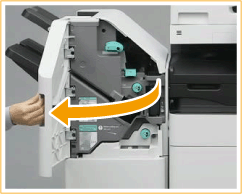 Duw het rugnietapparaat naar binnen en sluit de voorklep van de finisher.