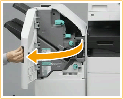 Houd het groene lipje van de nietpatroonhouder vast en trek deze recht naar buiten.