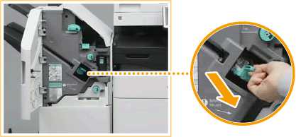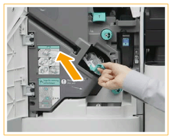 Houd het groene lipje van de nietpatroonhouder vast en duw deze zo ver mogelijk naar binnen.