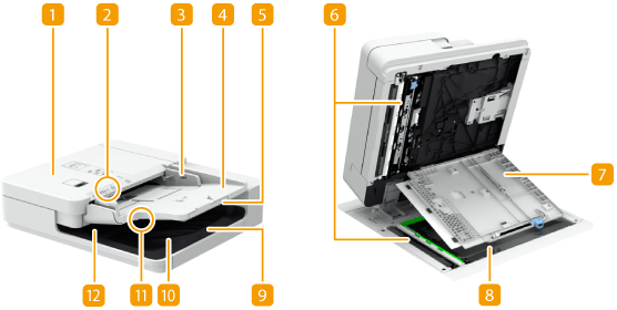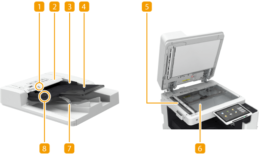 Hier geplaatste originelen worden automatisch in de aanvoer ingevoerd. Wanneer u twee of meer vellen plaatst, kunnen originelen achter elkaar worden gescand.
