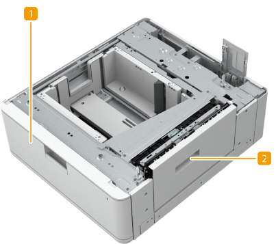 Plaats geen papier in het High Capacity Cassette Feeding Unit-B waarop eerder is gekopieerd, omdat dit storingen of beschadiging van de machine tot gevolg kan hebben. Gebruik altijd de papiertafel voor het invoeren van papier wanneer u op de achterzijde van een vel papier wilt afdrukken (tweede zijde van 2-zijdige kopie).