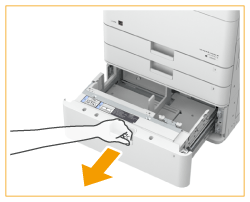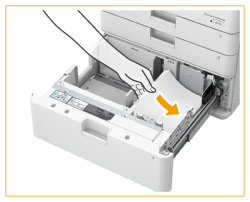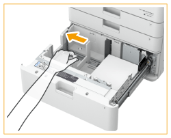 Als de papierlade niet volledig in het papiermagazijn wordt geschoven, is het niet mogelijk kopieën of afdrukken te maken.
