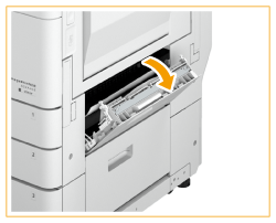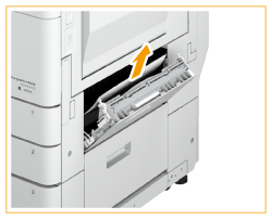 Als er papier is vastgelopen, trekt u dit voorzichtig naar buiten in de richting van de pijl.