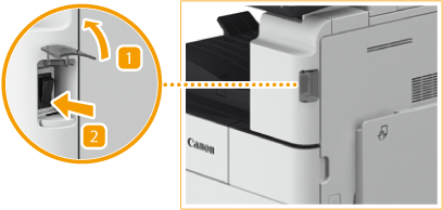 Gegevens die zijn opgeslagen in de machine, kunnen beschadigd raken als de Geavanceerde ruimte (gedeelde opslag op de machine) wordt gebruikt door een andere multifunctionele Canon-printer* of een computer vlak voordat de machine wordt uitgeschakeld.