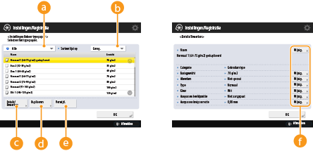 U kunt de informatie voor opgeslagen typen gebruikerspapier importeren/exporteren en deze delen met een andere Canon-machine. De instellingen afzonderlijk importeren/exporteren