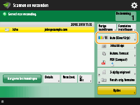 Geef de bestemming op het scherm met basisfuncties voor scannen op. Scherm met basisfuncties voor scannen