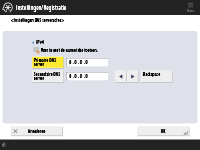 Druk op <Voorkeuren>  <Netwerk>  <Instellingen sublijn>  <Instellingen vr Systeemdatacommunic.>  <Instellingen DNS-serveradres>.